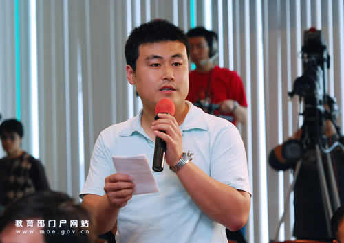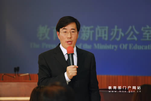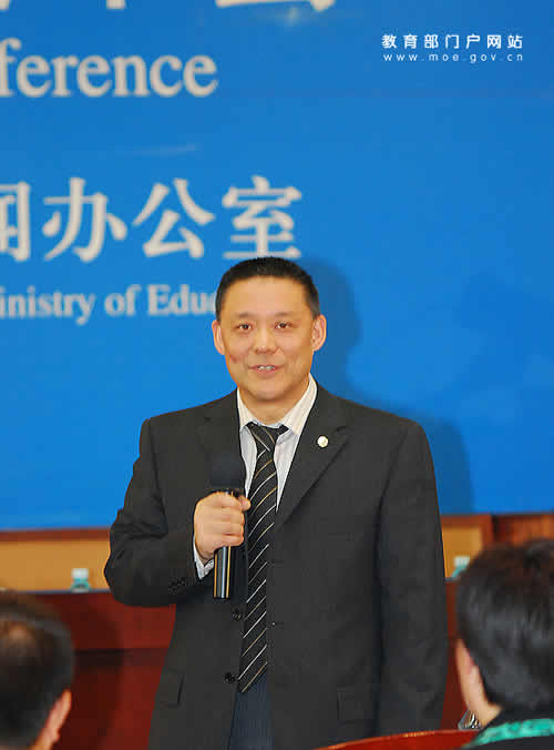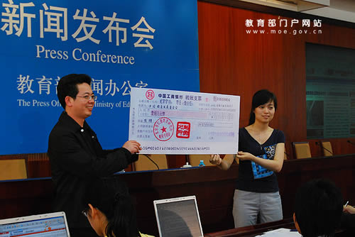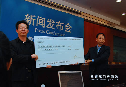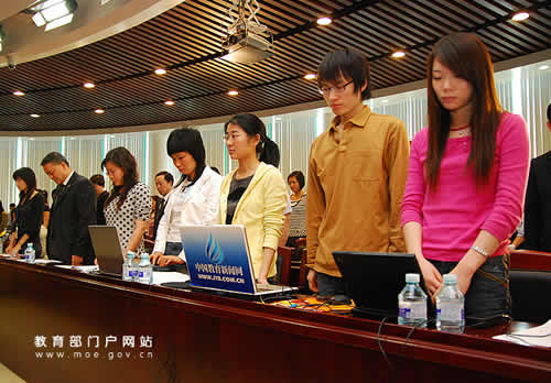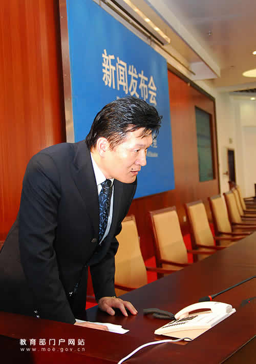 教育部新闻发言人王旭明主持本次发布会 与会的所有同志起立默哀为在这场灾难中失去生命的学生、老师特别为保护学生生命而英勇献身的老师们 中国教育发展基金会秘书长张中原介绍通过中国教育发展基金会开展捐款活动支援教育系统抗震救灾工作有关情况 连线全国青年常委、福建省政协委员,青年企业家协会会长,阳光集团董事长林腾蛟先生 同时现场连线的还有:固原一中王荣武老师、中国科学院微电子研究所叶甜春同志 中国教育发展基金会的副秘书长陈希原(左)先生接受怡海置业(集团)董事长王绯玲之前向中国教育发展基金会捐款1100万元港币资助教育事业支票 中国教育发展基金会副秘书长陈希原先生接受北京市仁爱教育研究所捐款100万元支票 中国平安保险(集团)股份有限公司北京代表处王继辉主任介绍有关情况 新东方教育科技集团高级副总裁陈向东先生介绍有关情况 北京市政协委员,北京市侨资商会副会长、怡海置业(集团)董事长王绯玲女士的代表,北京八中怡海分校校长尹小凤女士介绍情况 出席新闻发布会的代表还有:辽宁方大集团实业有限公司党委书记何忠华先生、阳光国际集团林腾蛟先生的代表阳光国际集团北京投资总部负责人霍艳梅女士、黄思敏先生等 新华社记者:第一个问题:现在是否所有灾区中小学都已经停课?大概需要多长时间能够恢复正常教学秩序?第二个问题:发生地震以后,是否会对灾区的中考、高考有影响?如果有影响,教育部这边会有什么措施? 新京报记者:您如何看待灾区中小学伤亡比较严重的现象?