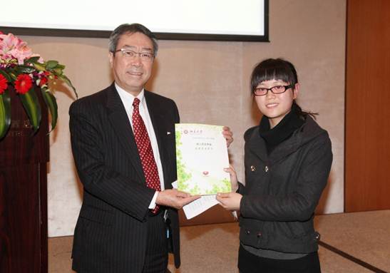 中国教育发展基金会副秘书长陈希原高度赞扬帝人集团对中国教育事业、人才培养的关注与支持。2010年,在中国教育发展基金会的协助下,帝人奖学会制度在中国启动,奖励来自北大、清华、复旦、上海交大化学和材料相关专业品学兼优的研究生,每位学生每年奖励8000元人民币,2年来共奖励学生36名。陈希原副秘书长希望同学们在学好学业的同时,要学会珍惜,学会感激,在有成就的将来以最大的可能回报社会。