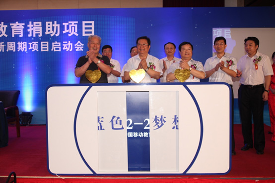 会上,教育部副部长刘利民与中国移动通信集团公司副总裁、中国移动慈善基金会副理事长李正茂、中国教育发展基金会理事长张保庆共同用金钥匙开启启动台,标志着“蓝色梦想—教育部、中国移动教育捐助计划” 2012-2015新周期项目正式启动。2012-2015年新周期的教育捐助计划项目,中国移动将投入 5000万元,继续通过影子培训和远程培训的方式,培训44000名中西部地区农村中小学校长,在中西部贫困地区建设600间中国移动爱心图书馆(室)和600间中国移动多媒体教室。
