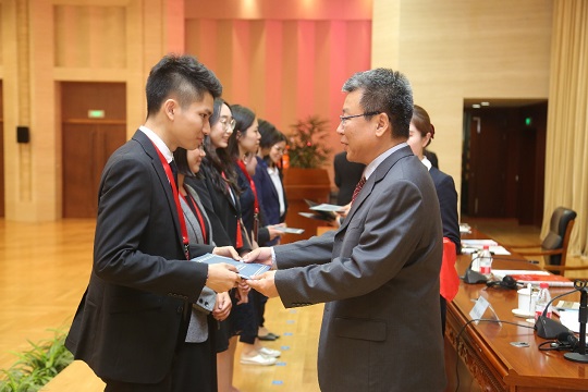 5月17日,国家开发银行留学生奖学金2018年度优秀留学生奖学金颁奖活动在北京举行。国家开发银行教育培训局局长兼开发性金融学院院长刘进、国家留学基金管理委员会副秘书长王胜刚、中国教育发展基金会副秘书长王建光为获奖优秀留学生颁发证书。国家开发银行教育培训局副局长兼开发性金融学院副院长黄闽慧主持活动。获奖留学生和学校教师代表110多人参加了此次活动。 活动对2018年度遴选出的65位优秀留学生进行奖励,鼓励他们努力、刻苦学习,珍惜留学时光,成为连接中国与各自国家的纽带和桥梁。 留学生代表在发言中说,在中国的留学经历不仅给他们带来了个人的成长,更为他们各自国家经济社会发展和国际合作培养了跨文化的优秀人才。并表示在努力学习专业知识的同时,积极参加社会实践活动,用真诚巩固友谊,用责任奉献回馈中国,做文明交流互建的使者,为促进国家发展和国际合作做出应有的贡献。 国家开发银行留学生奖学金项目提供的不仅是资金支持,也是来华留学生了解中国经济建设和改革发展的窗口。在刚刚结束的第二届一带一路国际合作高峰论坛上,习近平主席指出,要将一带一路建成文明之路,要推动教育合作,扩大互派留学生规模。今后国家开发银行留学生奖学金项目将继续为世界各国,尤其是一带一路沿线国家培养跨文化的优秀人才,使其成为中国连接世界各国的桥梁和纽带。 |