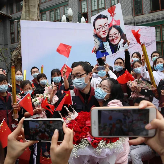 2020 注定是个不同寻常的一年 年初 一场突如其来的疫情打破了生活的平静 新闻中不断增加的数字 抗疫前线的一举一动 牵动着每一个人的心跳 当凛冬散去 春归大地 万物复苏 我们知道 我们赢了! 伟大的中华民族赢了! 为全方位展现教育系统抗疫的伟大实践 教育部应对新冠肺炎疫情工作领导小组办公室、中国教育发展基金会 联合发布“教育系统抗疫斗争伟大实践影像、海报展”作品 反映教育系统抗击新冠肺炎疫情的中国行动 构筑中国人民万众一心的时代记忆! 在教育部应对新冠肺炎疫情工作领导小组办公室发出 抗“疫”作品征集活动后 全国大中小学幼儿园教职工、 学生(留学生)以及学生家长 和关注教育系统抗击疫情的摄影家、 摄影摄像爱好者、设计师等 积极响应,踊跃投稿 用笔尖的力量传递温暖 用手中的相机定格温情 用温暖的话语鼓舞人心 以力所能及的方式 为这场没有硝烟的战争 贡献出自己的一份力量 接下来 让我们一起来欣赏他(她)们 带来的优秀作品 作者:林金平 作品名称:《安全的距离》 作品介绍: 2020年4月27日,随着疫情逐渐得到控制,为迎接高考,北京市各中学高三年级开学复课。图为昌平一中高三学生午餐情景。 作者:于晓东 作品名称:《风雨中的坚守》 作品介绍: 2020年2月5日,北京突降大雪,中国矿业大学(北京)保安员顶着风雪,冒着严寒,站立在学校的东大门,守卫校园。 作者:张晓衡 作品名称:《手心相连战疫魔》 作品介绍: 2020年2月3日,武汉大学人民医院重症突击队队长余追教授,带领医护团队联合查房,精心调整救治方案。他还与饱受病毒折磨的重症患者握手鼓劲,鼓励他树立信心战胜病魔。 作者:齐剑东 作品名称:《雪中坚守》 作品介绍: 2020年2月15日,武汉大雪,华中科技大学同济医学院附属同济医院医护人员在雪中搬运抗疫物资。 作者:李海符 作品名称:《疫情之下的升旗仪式》 作品介绍: 2020年8月28日,广东省佛山市顺德区第一中学1000名高一新生返校军训,图为军训结业典礼上的升旗仪式。 作者:张强 作品名称:《直击方舱现场》 作品介绍: 2020年2月11日,在武汉国际会展中心方舱医院,高校附属医院的医护工作者与患者一起跳广场舞。 作者:金南星 作品名称:《隔着玻璃亲吻》 作品介绍: 2020年2月4日,浙江大学医学院附属第四医院感染楼员工通道入口,首批进入医院负压病房的95后护士陈颖,与男友时隔11天相见,两人情不自禁隔着玻璃亲吻。 作者:陈泽泉 作品名称:《给校园消毒》 作品介绍: 2020年3月22日,湖南省长沙市明德启南中学消杀防疫队员在食堂进行例行消毒。 作者:何苗 作品名称:《特别的日子》 作品介绍: 2020年4月21日,在四川大学抗击新冠肺炎疫情外派医疗队凯旋的日子里,一名小伙向刚抗疫归来的女友求婚成功。 作者:廖游玩 作品名称:《战地课堂》 作品介绍: 2020年2月28日,广东省援鄂医疗队在湖北省荆州市第一人民医院新冠肺炎重症救治中心,临时组建战地课堂,护士长带领护士为患者进行CRRT治疗。 |
