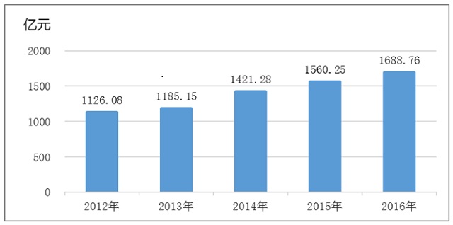 2012年至2016年,各教育阶段全国累计资助资金总额6981.52亿元。年资助金额从2012年的1126.08亿元,增加至2016年的1688.76亿元,增长了49.97%,年均增幅10.66%。
