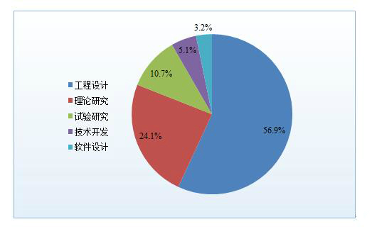 “十二五”期间通过工程教育专业认证的工科专业不同类型毕业设计(论文)平均占比的分布情况