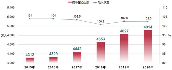 全国初中在校生规模及毛入学率